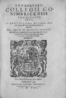 Cologne, Sumptibus Lazari Zetzneri, 1596. [Suivi de] Commentariorum Collegii Conimbricensis societa-tis Jesu, in quatuor libros de Coelo, Meteorologicos & Parva Naturalia Aristotelis Stagiritæ. Hac tertia in Germania Editione… [Suivi de] In Libros Ethicorum Aristotelis ad Nicomachum … Tertia Hac in Germania editione correctiores editæ…