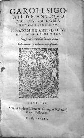 Humaniste italien né à Modène, Sigonius (Carlo Sigonio en italien, v. 1524-1584) fut notamment reconnu pour ses écrits sur les antiquités grecques et romaines.