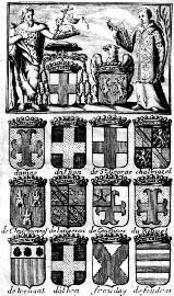 18. MENESTRIER ( Père ). La Nouvelle Méthode Raisonnée du Blason, pour l’ap-prendre d’une manière aisée; réduite en Leçons, par demandes et réponses. Enrichie de figures en taille-douce. Nouvelle Edition, revue, corri-gée, augmentée. Lyon, Bruyset Ponthus, 1754 . In-8, reliure moderne pastiche demi-basane fauve, dos lisse orné. Exemplaire lavé, page de titre et plusieurs feuillets restaurés ou réen-margés.Titre, 4 ff. (dont Privilège réenmargé et incomplet), 298 pp. et 13 ff. non ch. (Table). Illustré de 33 planches dont deux sont non reliées. Bon exemplaire de travail.