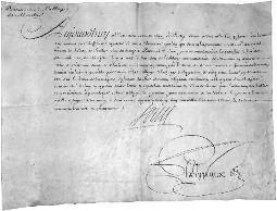 Pièce manuscrite sur vélin (30 x 43,5 cm) signée Louis et contresignée par Colbert.