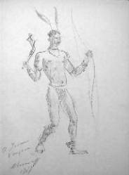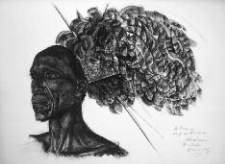 de garde un grand dessin au crayon représentant un guerrier africain,