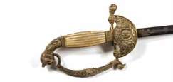 pommeau à la minerve, décors de tête de lion et palmettes, fusée à