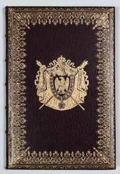 basane blanche à la bradel, titre stylisé apparaissant en relief dans un