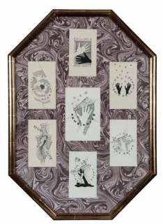 Réunion de 7 dessins à la plume par le relieur, peintre et bibliophile Paul Bonet.