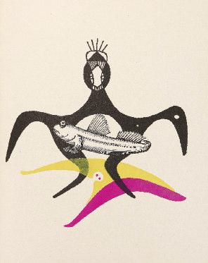 Linogravure tirée en couleurs sur vélin en couverture du livre, «Dans l’argile de Picasso ». Le livre contient 25 poèmes de Dante Alberti. 1 des 200 ex, Arnera Vallauris imprimeur. Non signé comme tout le tirage. Cat Cramer livres illustrés n° 89.