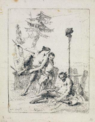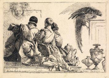 « Previous Page Table of Contents Next Page »166 - GIOVANNI DOMENICO TIEPOLO - P AGES , VASE ET PERROQUET . (S. 176). Eau-forte et burin. Très belle épreuve de l’état définitif, légères piqures brunes, environ 0,5cm de marge.