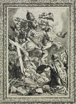 167 - GIOVANNI DOMENICO TIEPOLO - L ES ARTS RENDENT HOMMAGE A P IE VI. (S. 180). 341 x 230. Dans une bordure gravée : 427 x 310. Eau-forte et burin. Très belle épreuve de l’état unique, légères rousseurs éparses, déchirure environ 1cm dans la marge droite (atteignant le bord du coup de planche), petite cassure dans l’angle supérieur gauche. Petites marges.