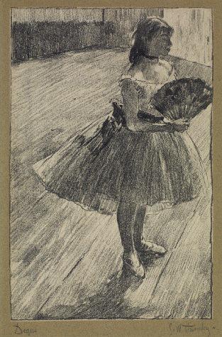 248 - EDGAR DEGAS ET GEORGE W. THORNLEY - P ETITE DANSEUSE A L ’ ÉVENTAIL . De la série des Quinze Lithographies, éditées par Boussod et Valadon. 1889 - 89. 262 x 170. Lithographie impression sur chine appliqué sur vélin teinté. Très belle épreuve signée par Degas et Thornley. Tirage à une centaine d’exemplaires. Grandes marges.