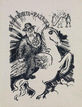 - M ONSIEUR R. A ZARIA , HONNEUR ET PATRIE . Illustration pour le menu d’un banquet. 19 décembre 1927. (reproduit dans Juffermans, seconde édition 2010 p. 189) 268 x 190. Lithographie. Epreuve sur chine, pliure horizontale, légères pliures et rousseurs dans les marges, infimes déchirures dans la marge droite. Feuillet : 320 x 250.