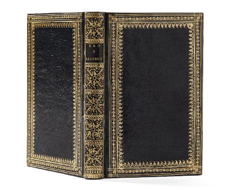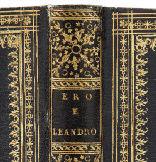 di museo grammatico trasportate in verso italiano da Girolamo Pompei. Parigi, Renouard ix-1801. in-12; maroquin marine à long grain, encadre-ment de roulete, dentelle et filets dorés sur les plats. Dos lisse richement orné. Roulette sur les coupes. Encadrement intérieur rehaussé d’une rou-lette dorée. Gardes et contregardes tabis rose. Couvertures muettes par-cheminées conservées.[Etiquette Bradel l’aïné].
