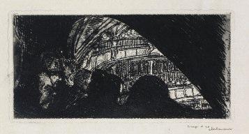 - L’ AMPHITHEATRE DE L ’O DEON . 1897 (S. Laboureur 4). 97 x 199. Eau-forte sur zinc. Epreuve sur vergé signée en bas à droite annotée “tirage à 10”, coup de planche fracturé, infime tache dans la marge inférieure. TRES RARE. A toutes marges : 270 x 360