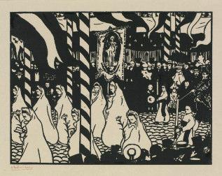 - L A PROCESSION . 1899 (S. L. 602). 230 x 300. Gravure sur bois. Epreuve sur vélin signée en bas à gauche numérotée 4, au crayon de couleur rouge. (tirage à 60 ou 70 ex.) Bonnes marges.