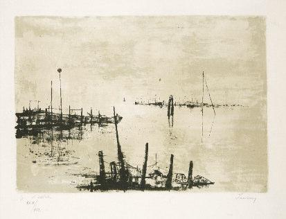 - L AGUNE . 360 x 500. Lithographie imprimée en couleurs. Epreuve sur vélin signée en bas à droite, annotée : “épreuve d’artiste”, XXIX / XXX. Légères taches et éraflures dans les bonnes marges. Cadre.