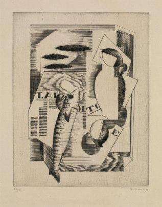 - L A TABLE . 1930 (S.M. 52). 248 x 180. Eau-forte et burin. Epreuve sur vélin de l’état définitif signée en bas à droite, numérotée 23/ 120, minuscules rousseurs piqures brunes, Infimes amincissures au verso dans le bord droit , infime éraflure en surface, petit enfoncement au verso, deux traces de manipulation dans les grandes marges. Feuillet : 500 x 380.