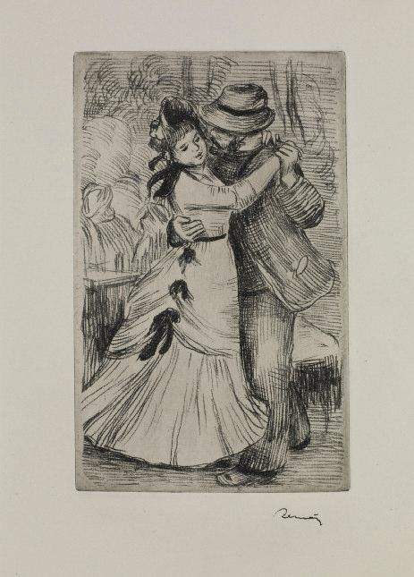 - L A DANSE A LA CAMPAGNE . 2ème planche. (Delteil 2) 222 x 135. Vernis mou. Très belle épreuve sur vélin avec la griffe de l’artiste imprimée en bas à droite. Feuillet : 320 x 250.