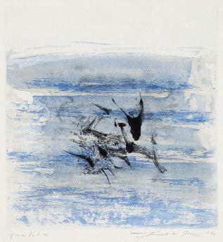 - C OMPOSITION . 1963. (A. 151). 502 x 343. Eau-forte et aquatinte. Epreuve sur vélin d’Arches signée en bas à droite datée, annotée “épreuve d’artiste” en dehors de l’édition à 95. Minuscules piqures dans les bords. A toutes marges.