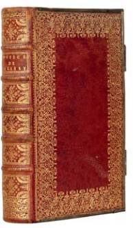 dos lisse orné, tranches dorées, gardes de soie bleue (reliure de l’époque). Illustré d’un titre et de 12 planches gravées.
