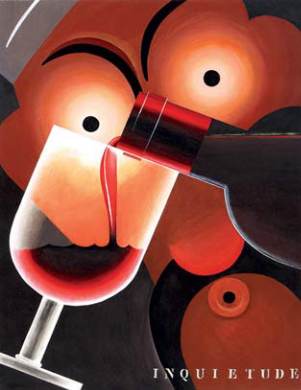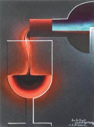179. CASSANDRE Nectar versant du vin dans une bouteille.