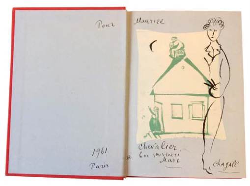 de Maurice Chevalier avec un envoi et un dessin signé de