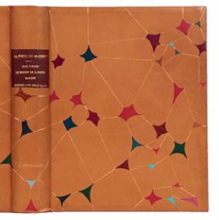 Reliure in-8, plein chagrin bordeaux, motifs sur le premier plat