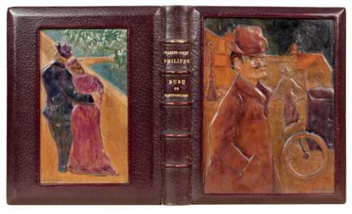 l’illustrateur. Reliure in-8 plein chagrin avec motifs de cuir