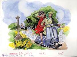 Aquarelle et encre de Chine noire pour une illustration parue dans le journal Mireille.