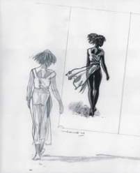 Mine de plomb, encre de Chine noire et lavis pour deux illustrations représentants une femme