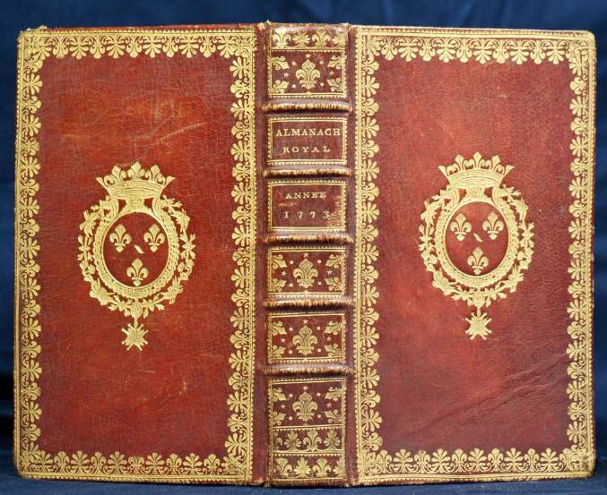 dentelle dorée entrecoupée de fleurs de lys sur les plats, plats armoriés, dos fleurdelysé, tranches dorées