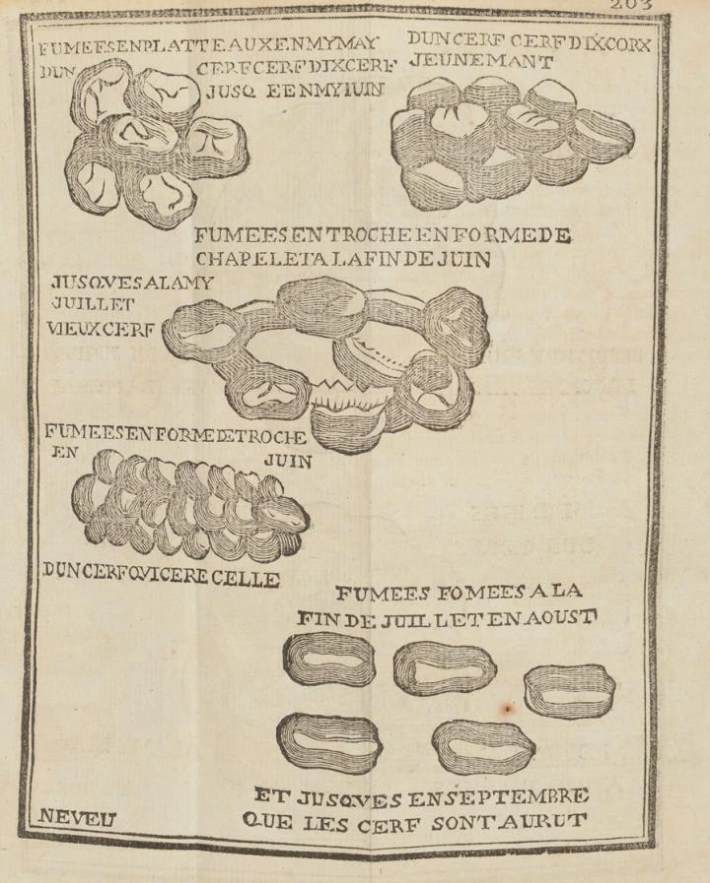 suite et d’un dictionnaire des termes de chasse. Les 19 gravures sur bois qui l’ornent sont toutes repliées ou