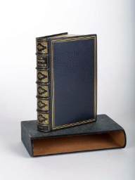. Petit in-8, maroquin bleu marine, triple filet doré sur les