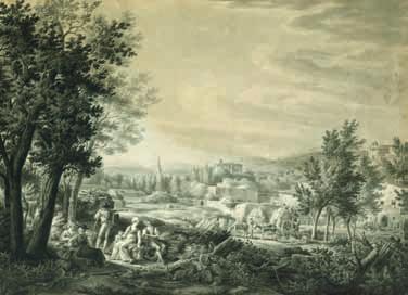 Plume et encre noire, lavis d'encre de Chine, lavis de bistre 56,8 x 80,1 cm Contrecollé