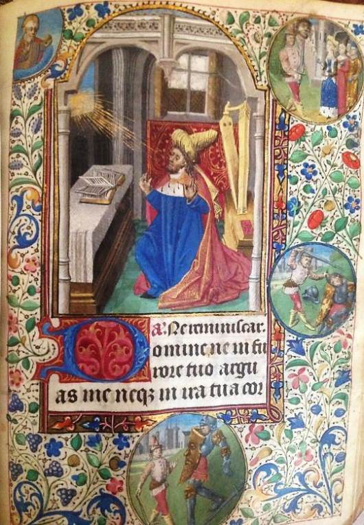 Le manuscrit est illustré de 13 grandes peintures, de médaillons en marge, et de 4 initiales historiées.