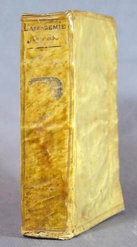 In-4, en plein vélin de l’époque, imprimé en caractère italique, pièce de titre de