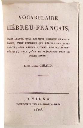 missionnaires en 1825 de ce dictionnaire hébreux-français en reliure du