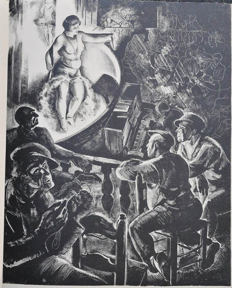 lui ses affiches anti-nazies. La présente suite se compose de 10 tableaux représentant la vie à Barcelone : cabaret,
