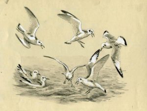 Oberthür (Joseph). Mouettes. Lavis original; 19,x 14,cm.