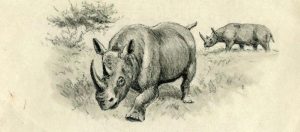 Oberthür (Joseph). Rhinocéros noir d’Afrique. Pierre noire originale; 21,5 x 9,5 cm.