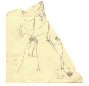Partie inférieure d’un dessin. Joint : Sexe d’homme. Fragment de dessin original au crayon, exécuté vers 1926-1928; 15,5 x 17 cm.