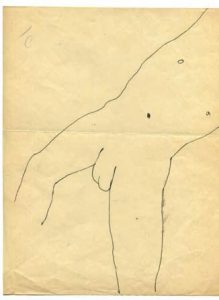 Cocteau (Jean). Homme nu allongé. Dessin original à l'encre, exécuté vers 1926-1928; 21 x 27 cm.