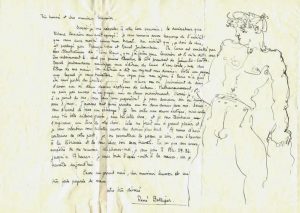 Bolliger (René). Lettre autographe, signée à Roland Saucier, avec Dessin Original à l’encre; une page in-4.