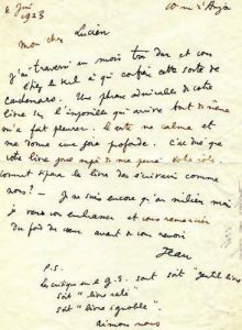 Cocteau (Jean). Lettre autographe, signée du prénom à Lucien Daudet. [Paris] 10 rue d’Anjou, 6 Juin 1923; une page in-4.