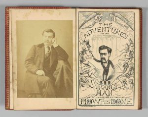 Lynn (H.-S.). The Adventures of Strange Man with asupplement showing «How it’s Done». Londres, Egyptian Hall, 1873; in-8 chag. rouge, fil. dor., points dor., et dent. dor. d’encadrement sur listel mosaïqué de mar. bleu, motifs dor. d’angle,