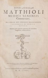 [MATTHIOLE] - PetriAndreae Matthioli medici senensis commentarii in libros sex pedacii discoridis anazarbei, de medica materia, Adiectis quam plurimis plantarum & animalium imaginibus, eodem authore. Venetiis, in officina Erasmiana apud...