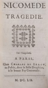 au format in-12, après l'Edition Originale de 1651. Charles de Sercy est le libraire parisien de Pierre Corneille. Tchemerzine ne connait pas cette édition et cite l'édition in-12 de Courbé en 1653. Selon Picot dans sa Bibliographie Corne-