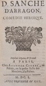 [CORNEILLE (Pierre)] - D. Sanche d’Arragon, comédie héroïque Imprimé à Rouen, & se vend à Paris, chez Augustin Courbé, 1650. In-12, [16p]-83p avec privilège. Plein maroquin, dos à nerfs, roulettes aux contreplat. Reliure signée par le...