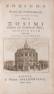 toire Nouvelle de Zosime, entièrement traduit en latin par Henri Estienne. Historien byzantin, il fut l'auteur de cette Histoire de I'Empire romain en six /ivres, dAuguste à Dioclétien en un survol rapide, et de celui-ci à la prise de Rome par Alaric en 410, beaucoup plus fouillée, surtout pour le règne d'Arcadius et le début du règne de Théodose //. Zosime imputait au Christianisme la chute de l'empire romain et prônait le retour au paganisme. ll écrit en grec, utilise de bonnes sources, en particulier Dexippe et Eunape, a le sens