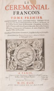 GODEFROY (Théodore et Denis) - Le Cérémonial françois, contenant les cérémonies observées en France [...] Paris, S. Cramoisy, 1649. 2 vol. in-folio; [28p]-1024p-[4p] et [14p]-1048p-[8p]. Plein veau marbré. Etat correct, nombreux défauts...