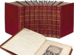 Boccace. Contes. Londres [Paris], s.n., 1779. 10 volumes in-8, maroquin rouge, triple filet doré, dos lisse orné, roulette sur les coupes, dentelle intérieure, tranches dorées (Derome le Jeune). Première édition de la traduction d’Antoine...