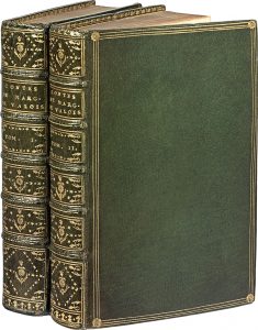 triple filet doré avec fleurette d’angles, dos orné aux petits fers, filet sur les coupes, dentelle intérieure, tranches dorées (Reliure de l’époque). Belle édition illustrée de l’Heptaméron, publiée en 1698 et plusieurs fois réimprimée. Elle est ornée d’un frontispice de Jan Goerée gravé par Jan van Vianen et 72 figures à mi-page dessinées et gravées à l’eau- forte par Jan Harrewijn dans le style de son maître, Romeyn De Hooghe, auquel elles ont parfois été attribuées. Agréable exemplaire dans une superbe reliure en maroquin vert émeraude de l’époque. De la bibliothèque de Vernay, avec ex-libris. Petites restaurations aux mors inférieurs du tome I. Fine mouillure marginale au tome II. Cohen, 680 (édition de 1708) - Landwehr : Romeyn De Hooghe, p. 15.