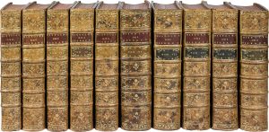 verte, tranches rouges (Reliure de l’époque). Première édition séparée, illustrée de près de mille planches d’oiseaux en coloris d’époque, de « l’un des monuments les plus importants de l’histoire de l’ornithologie » (Ayer). Le texte est, avec des variantes, celui des neuf volumes ornithologiques de l’Histoire naturelle générale et particulière donnés par Buffon durant les mêmes années (1770-1783). Buffon a reçu le concours de Philippe Guéneau de Montbeillard (1720-1785) pour les six premiers volumes, et celui de l’abbé Gabriel Bexon (1748-1784) pour les quatre derniers. L’illustration fut confiée à Edme-Louis Daubenton, qui fit dessiner par François-Nicolas Martinet, graver en taille-douce et soigneusement colorier une suite de 1008 planches, superbes et d’une grande précision, dont 973 représentent des oiseaux et 35 d’autres animaux et végétaux. Leur tirage restreint et leur coût élevé ne permirent pas qu’on les joigne aux neuf volumes de l’Histoire naturelle générale et particulière que Buffon avait consacré aux Oiseaux dans les mêmes années (1770-1783), aussi le naturaliste décida-t-il de les publier sous forme de la présente édition séparée, plus luxueuse, tirée au format grand in-4 ou sur grand papier in-folio. (L’Histoire naturelle générale et particulière sera quant à elle illustrée d’une suite différente de 262 gravures en noir d’après de Sève). « Cette édition formait certainement le livre d’oiseaux le plus ambitieux et le plus complet jamais paru à l’époque de sa publication et apparaît toujours aux yeux des collectionneurs comme l’un des plus importants de tous les livres d’oiseaux » (Sitwell). Bel exemplaire en reliure de l’époque. Les 35 planches non ornithologiques n’étant pas requises par le texte ou les tables des planches, elles n’ont pas été reliées dans cet exemplaire comme dans tous ceux que nous avons pu consulter. Il semblerait qu’on les trouve seulement dans les suites de gravures établies sans le texte de Buffon. De la bibliothèque du comte Thiroux de Gervillier, avec bel ex-libris gravé par Louise Le Daulceur d’après Gravelot. Mouchetures d’encre sur la planche n°21 1 (tome VI). Nissen : IVB, n°158 - Sitwell : Fine Bird Books, 63 -Ronsil, n°413 - Ayer : Zimmer, 104-106 - Anker, n°76 - Brunet, I, 1379.